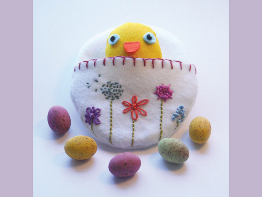 This cute little felted chick in its cosy egg is perfect for an Easter gift. It will also introduce you to the beautiful art of embroidery and teach you some of its most common stitches, such as blanket stitch, seed stitch, daisy stitch, and back stitch, as well as French knots!