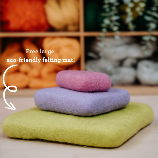 We think that needle felting is a little bit like magic - using just your needles, wool, and a foam pad you can turn soft fluffy wool into some amazing shapes! Needle felting uses a long, thin needle which has a series of notches at its tip. As you poke the needle into and out of the wool, these notches tangle the fibres of the wool together. It’s a hugely versatile craft but warning, it’s extremely addictive!