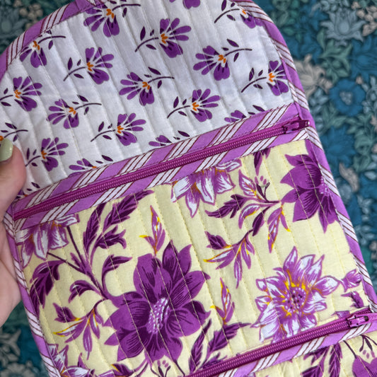 Quilted Really Useful Pouch (Cream with Purple Flowers)