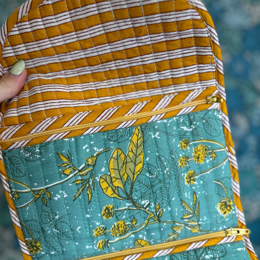 Quilted Everyday Zipped Pouch (Teal with Golden Leaves)