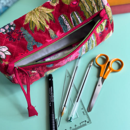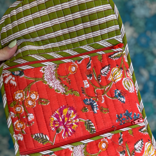Quilted Really Useful Pouch (Red with Colourful Flowers)