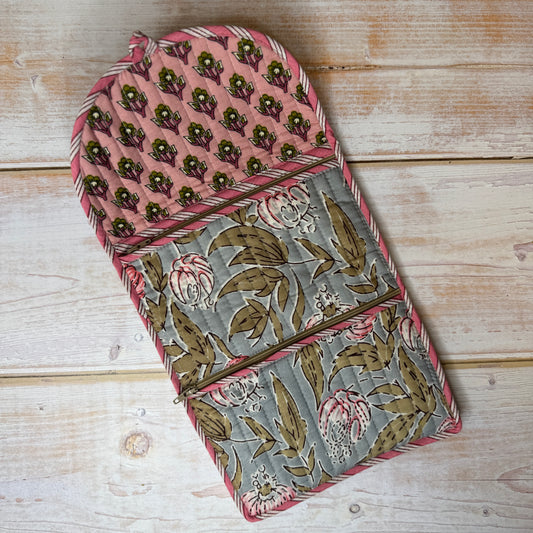 Large Reversible Quilted Tote Bag (pink with pink flowers)