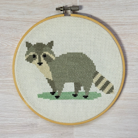 Raccoon Cross Stitch Complete Sample Hoop