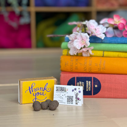 Say 'Thank You' with these colourful seed boxes packed with bee and butterfly friendly wildflower seeds.