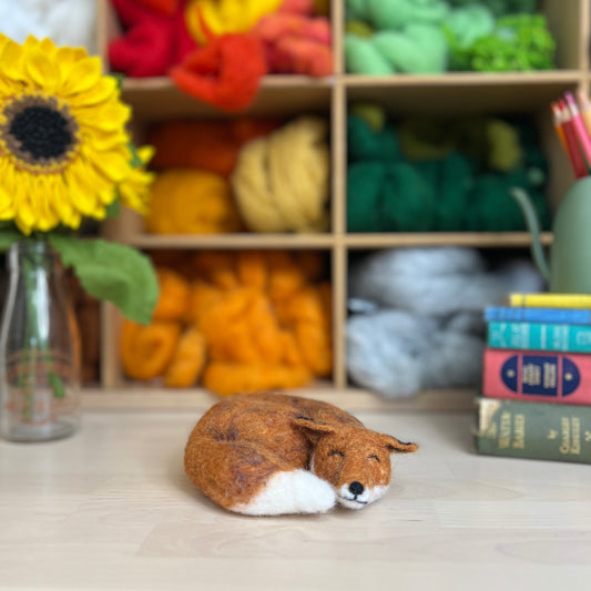 Painting with Wool Needle Felting Kit | Sleepy Fox in a Hoop