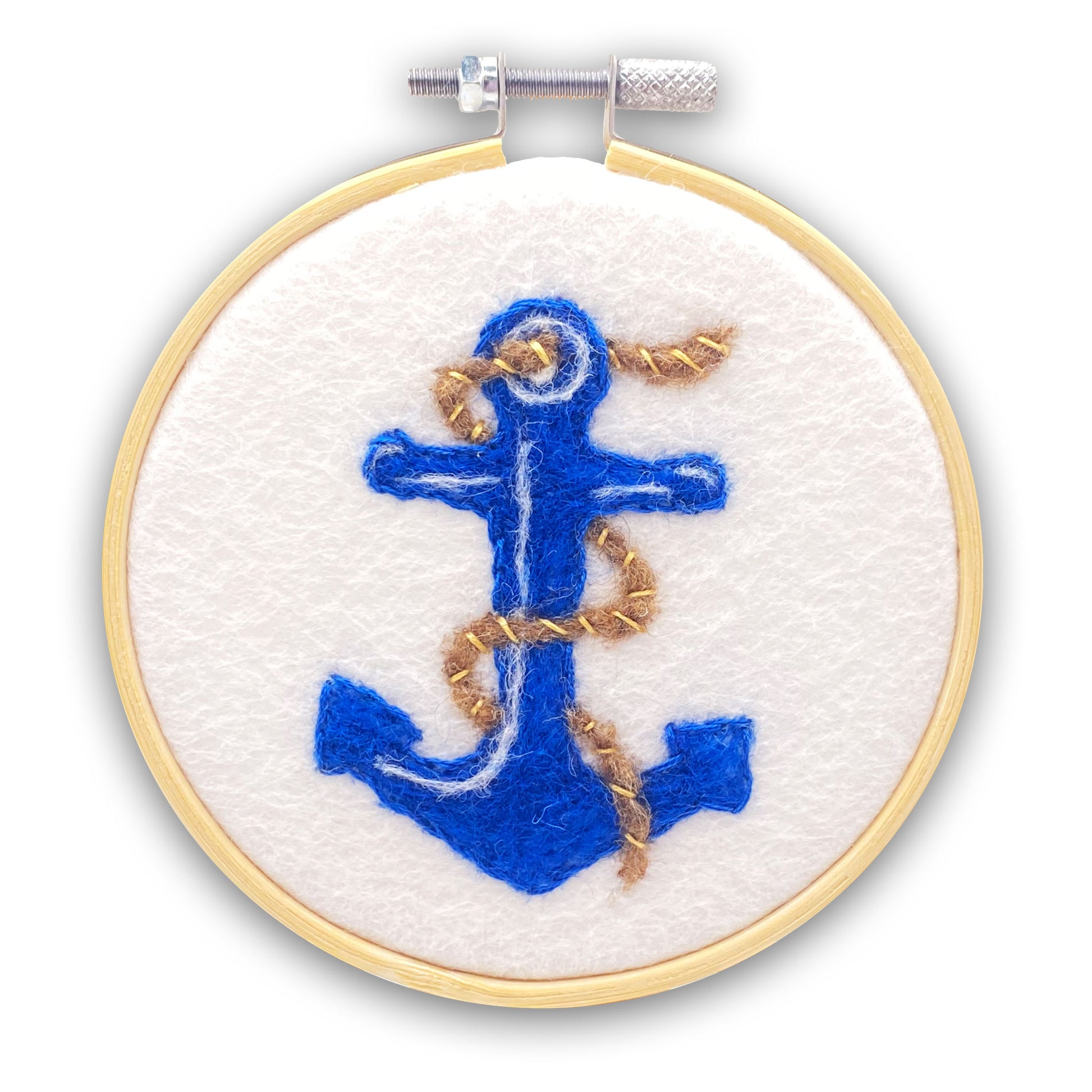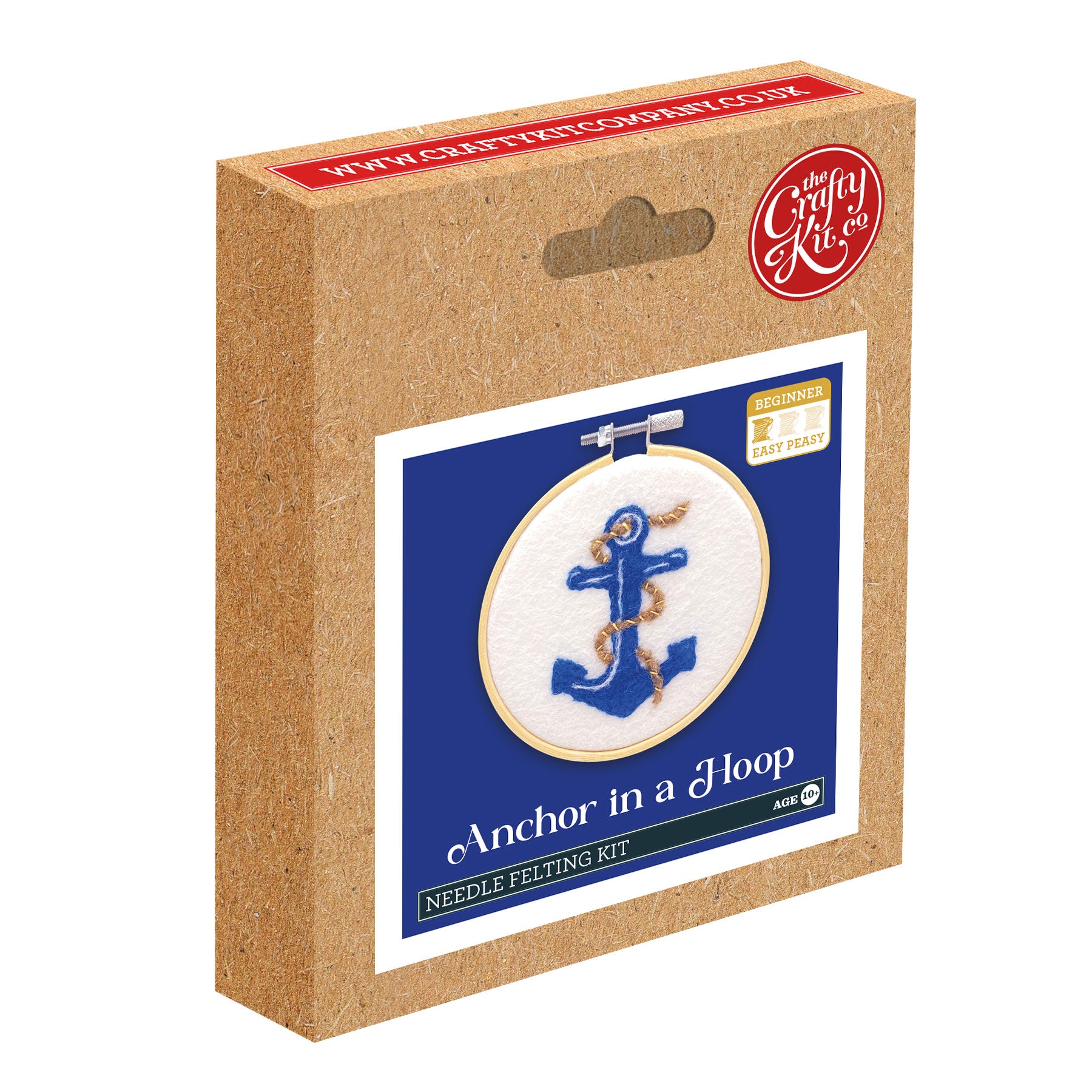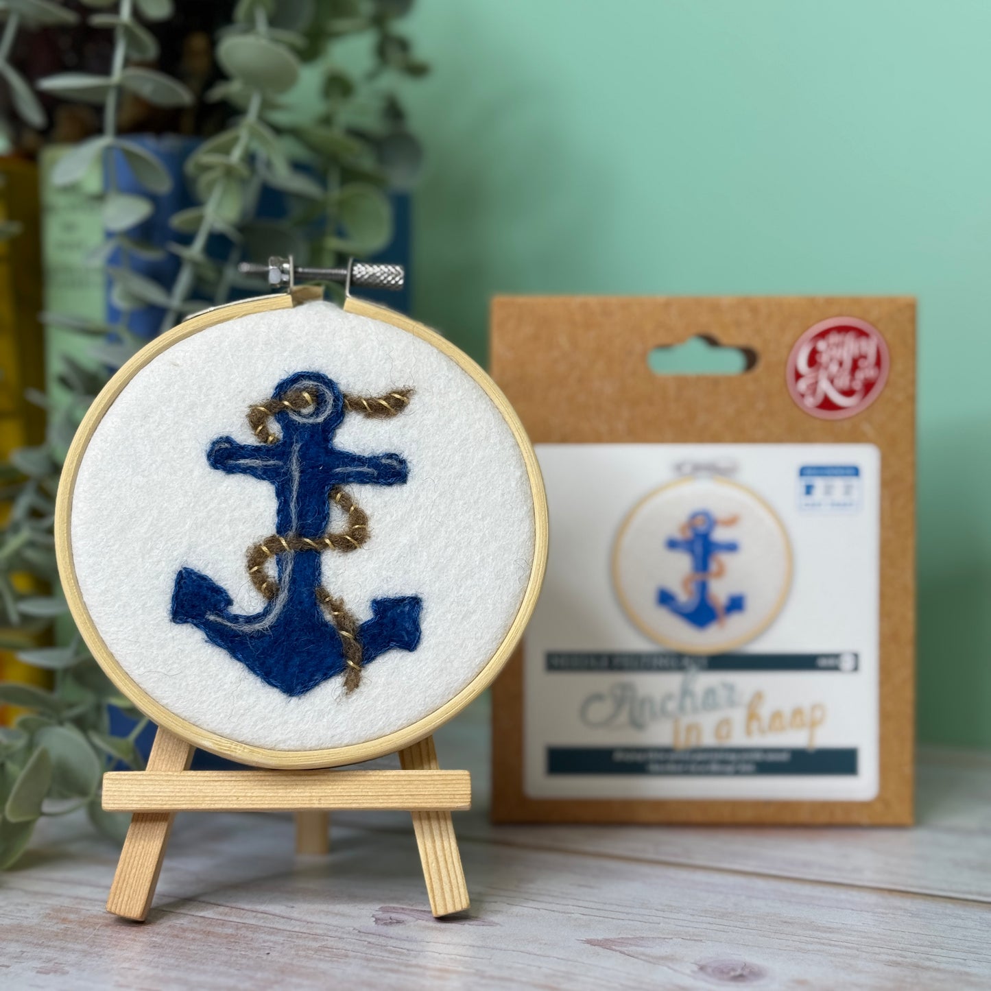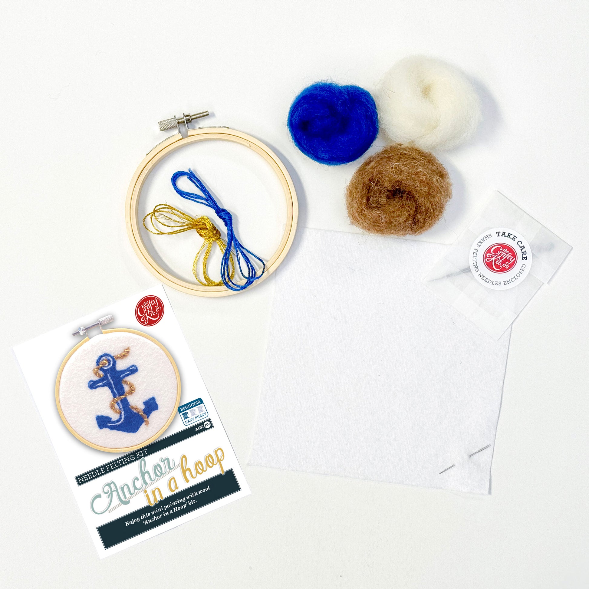 Create a beautifully detailed anchor design with this mini hoop needle felting kit. Perfect for beginners and experienced crafters, this kit contains everything you need to make a stylish nautical-inspired piece, ready to display in its own 10cm wooden hoop.
