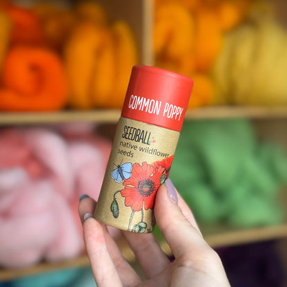 A tube bursting with common poppy seeds. A bright red flowering annual this hugely popular native wildflower is fantastic for pollinators and garden birds and a stunning addition to any wildflower garden. Poppies are also a big favourite for window boxes or for other small growing spaces.