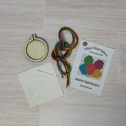 Happy Birthday! Balloons Mini Matchbox Cross Stitch Kit