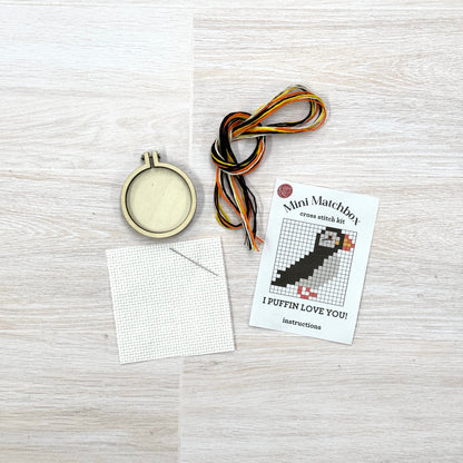I Puffin Love You! Mini Matchbox Cross Stitch Kit