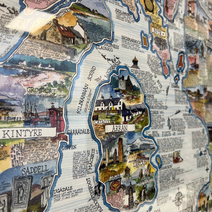Embark on a journey through the stunning landscapes and rich history of the Firth of Clyde with this captivating pictorial map by Ken. This artwork beautifully portrays the region's diverse landmarks, from the scenic beauty of the Isle of Arran and the historic Inveraray to the charming coastal towns of Largs and Dunoon. Ken's meticulous attention to detail and vivid colour palette bring each location to life, making this map a perfect piece for any home decor. More than just a decorative item, it is a tribute to the unique character and heritage of the Firth of Clyde. Enhance your living space with this extraordinary piece of art that encapsulates the spirit and beauty of this remarkable region.