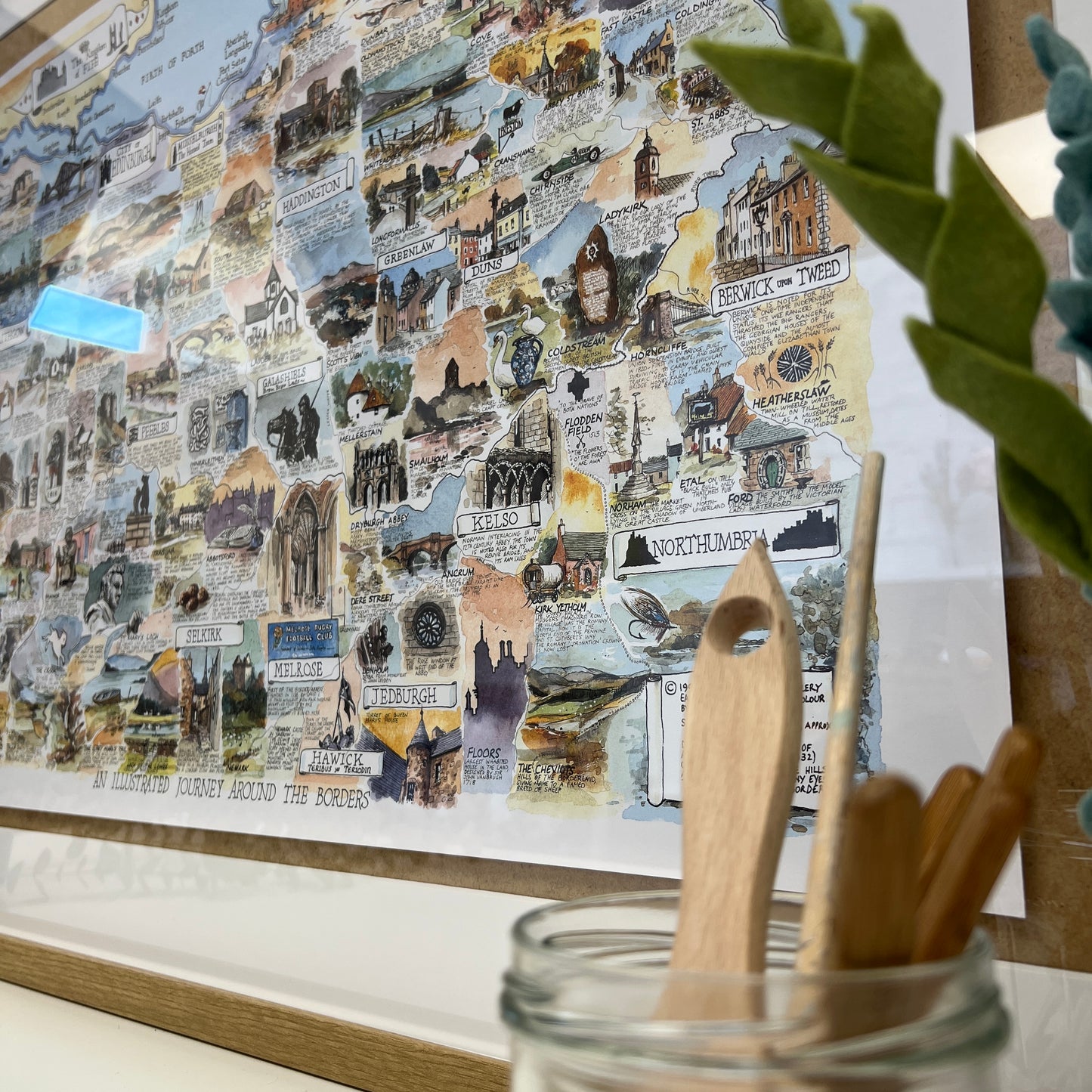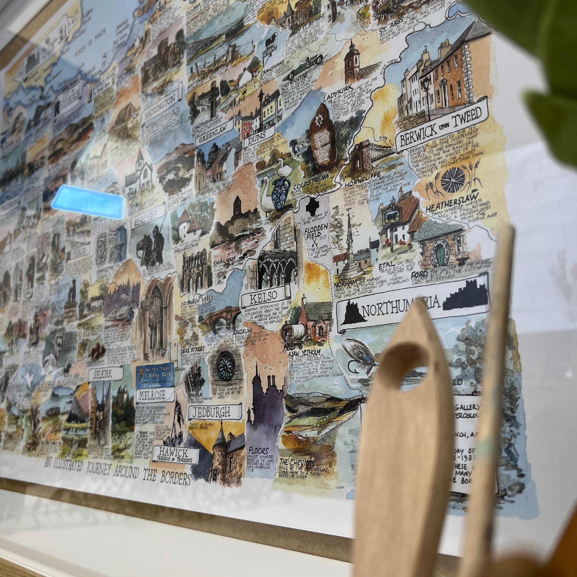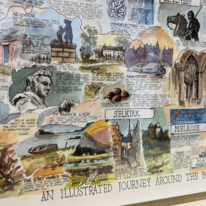 "The Borders map is a beautiful work of art. The blend of detailed illustrations and warm colours adds a unique and captivating focal point to my home." ~ Tracy Willows