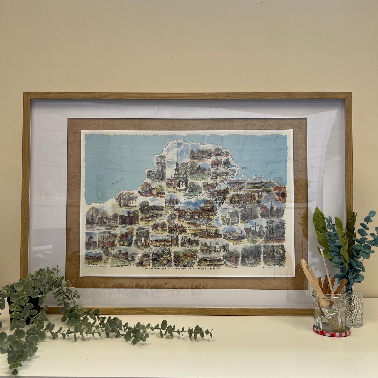 The map measures 61cm x 42cm and will be delivered to you in a sturdy postal tube, ready for you to mount and frame as you wish.