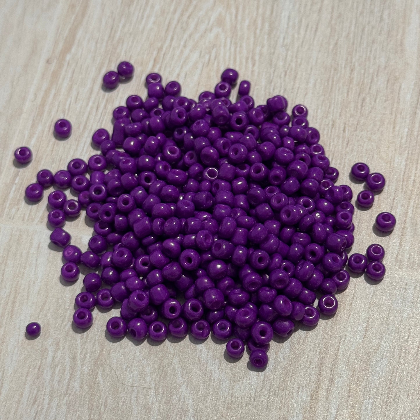 These large glass opaque purple seed beads are size 6, and come in bags of at least 13g.
