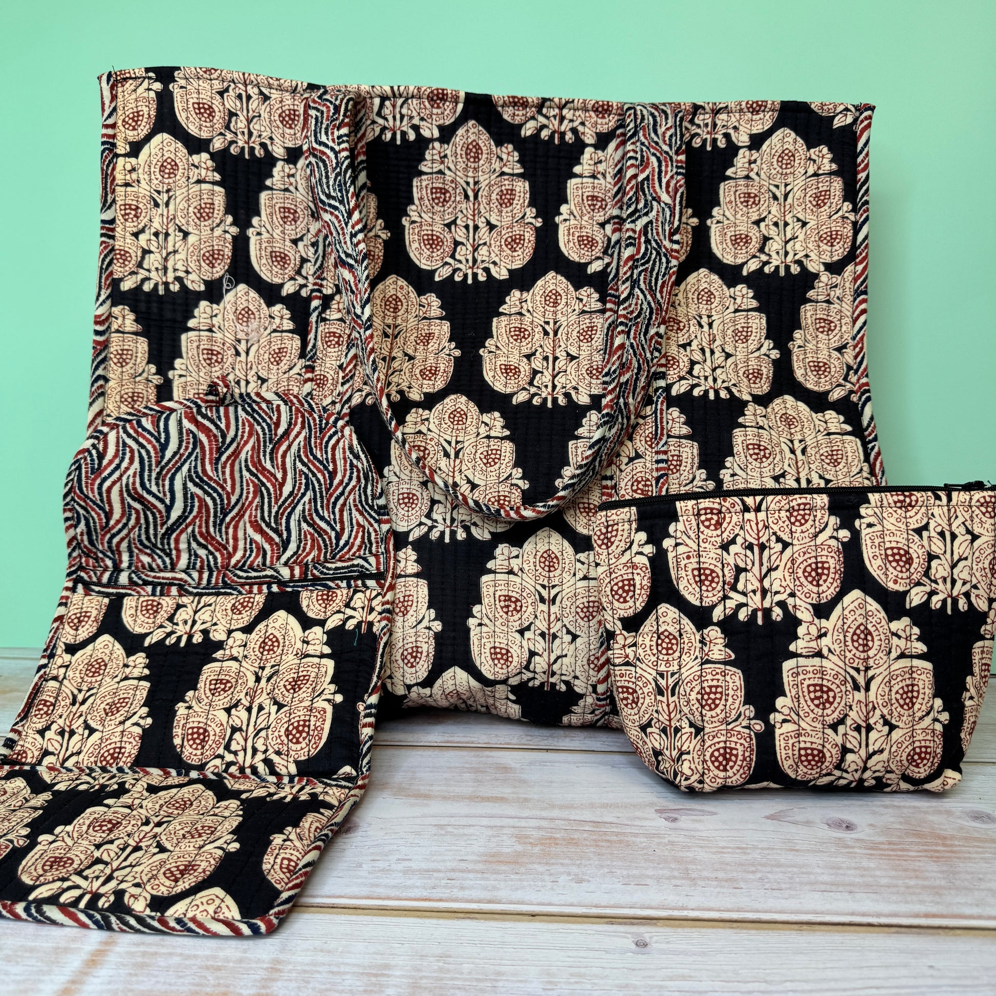 Handmade in Rajasthan, this gorgeous roomy and fully reversible quilted bag will quickly become your go-to bag for all sorts of things! Each bag has a beautiful bright pattern on the outside, and a unique interior with a pocket. Like lots of us, you’ll end up with more than one!