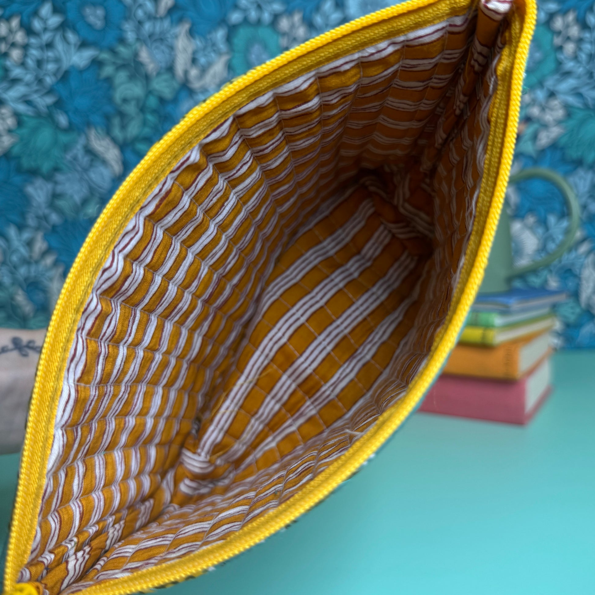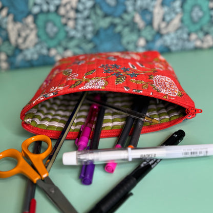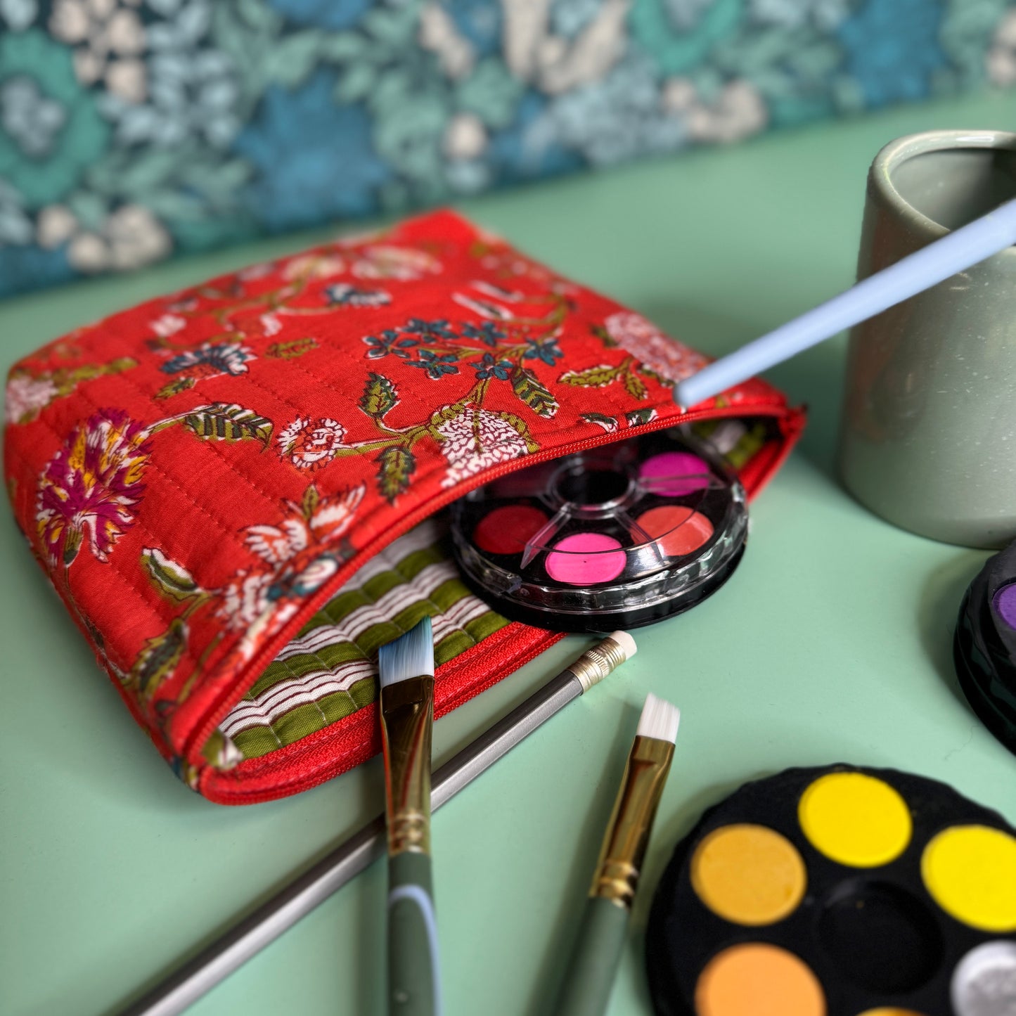 These lovely quilted everyday zipped pouches are hand made in Rajasthan and can be used as make up bags, craft bags, etc.