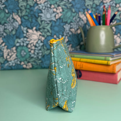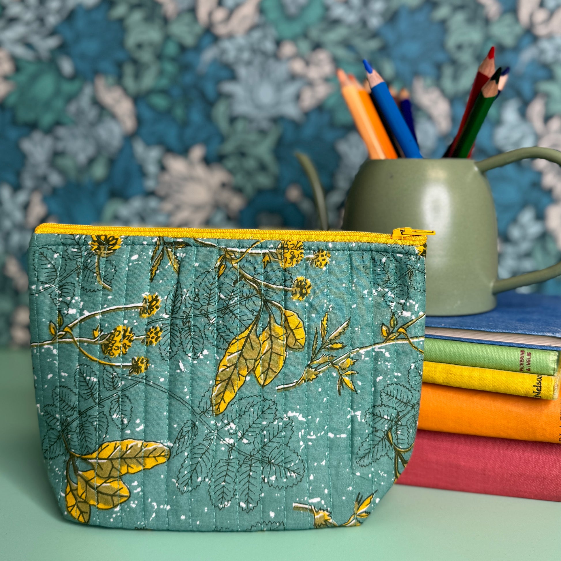Quilted Everyday Zipped Pouch (Teal with Golden Leaves)