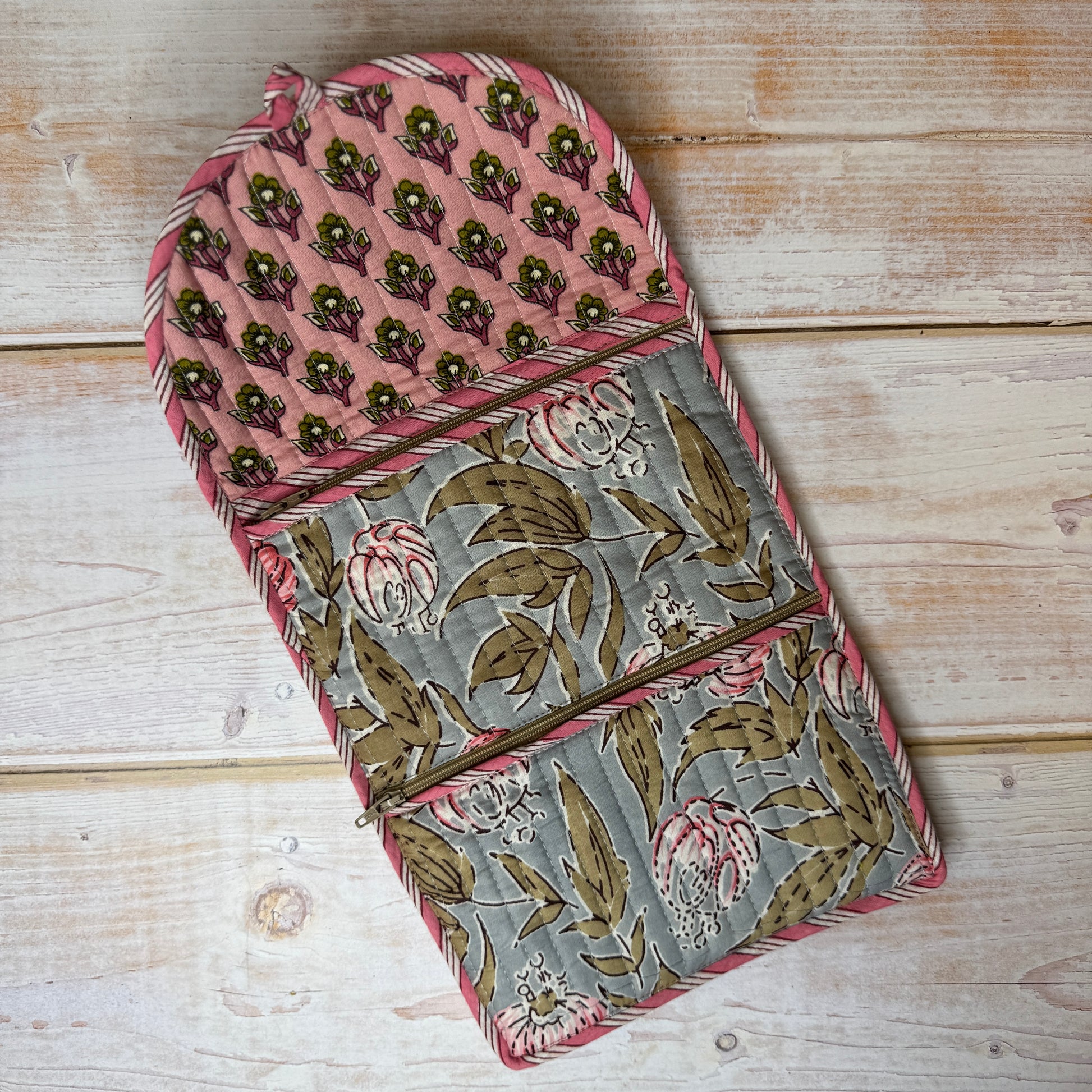 These lovely quilted really useful pouches with zips are hand made in Rajasthan and can be used as make up bags, craft bags, pencil cases etc.