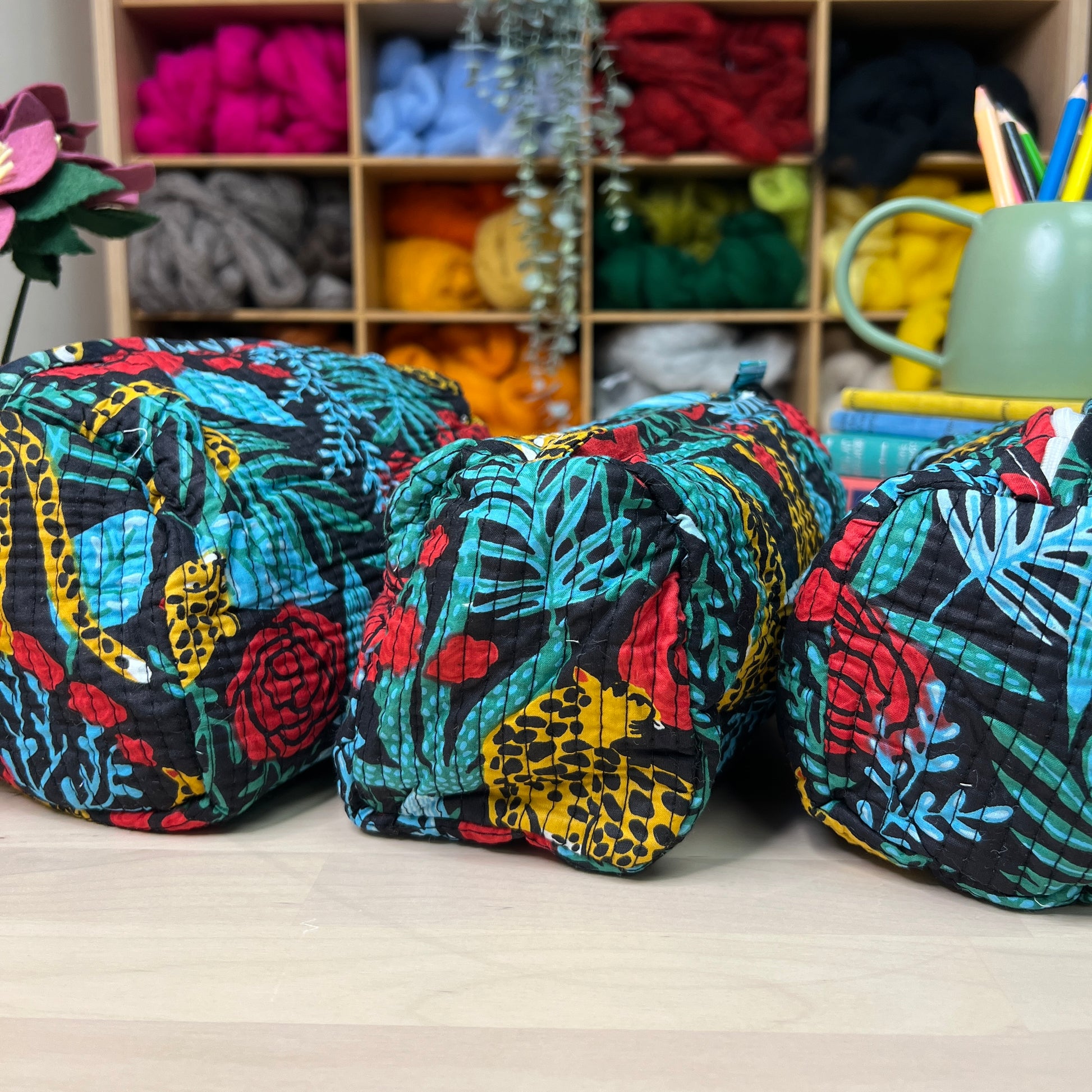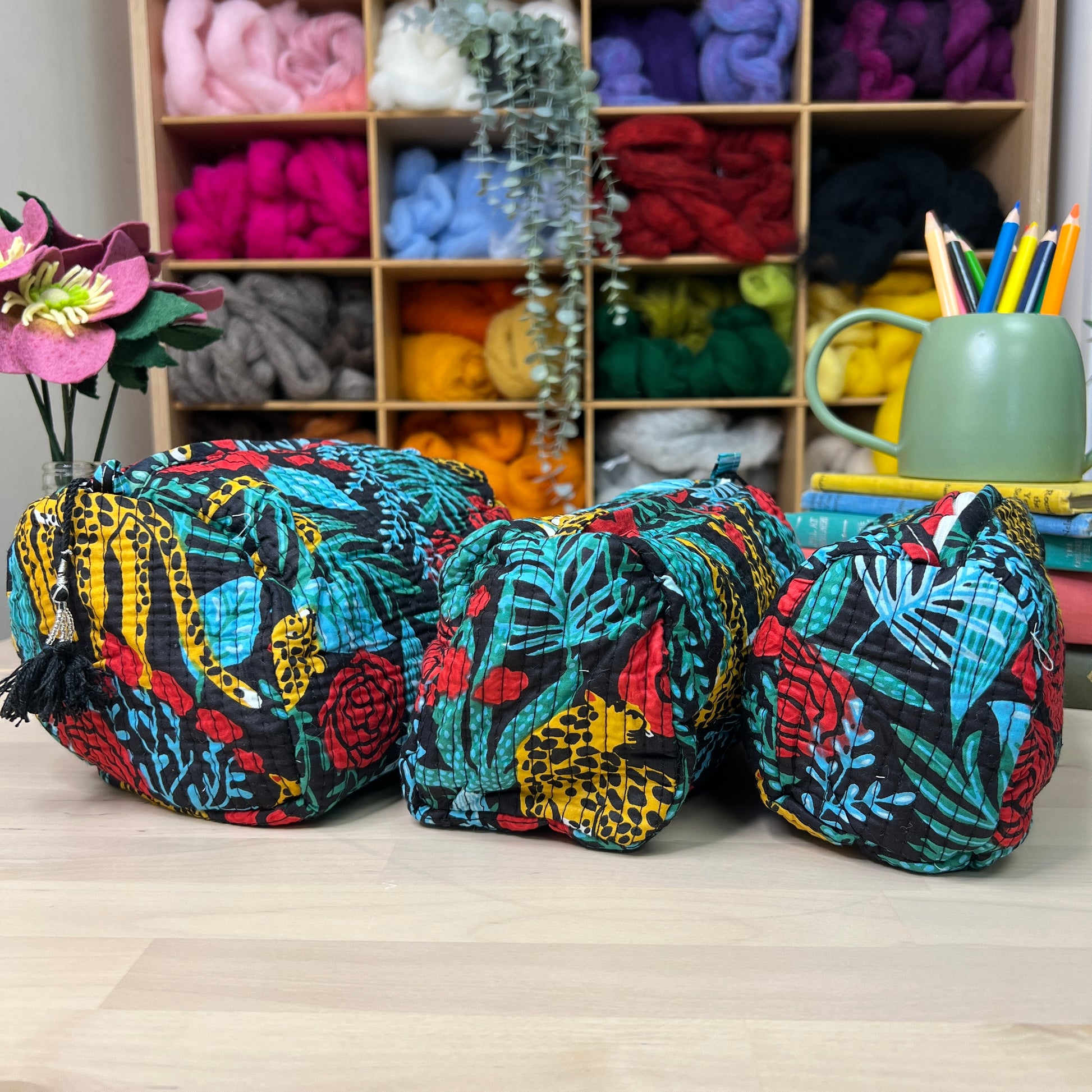 These lovely waterproof zipped bags are hand made in Rajasthan and can be used as wash bags (or craft bags!)
