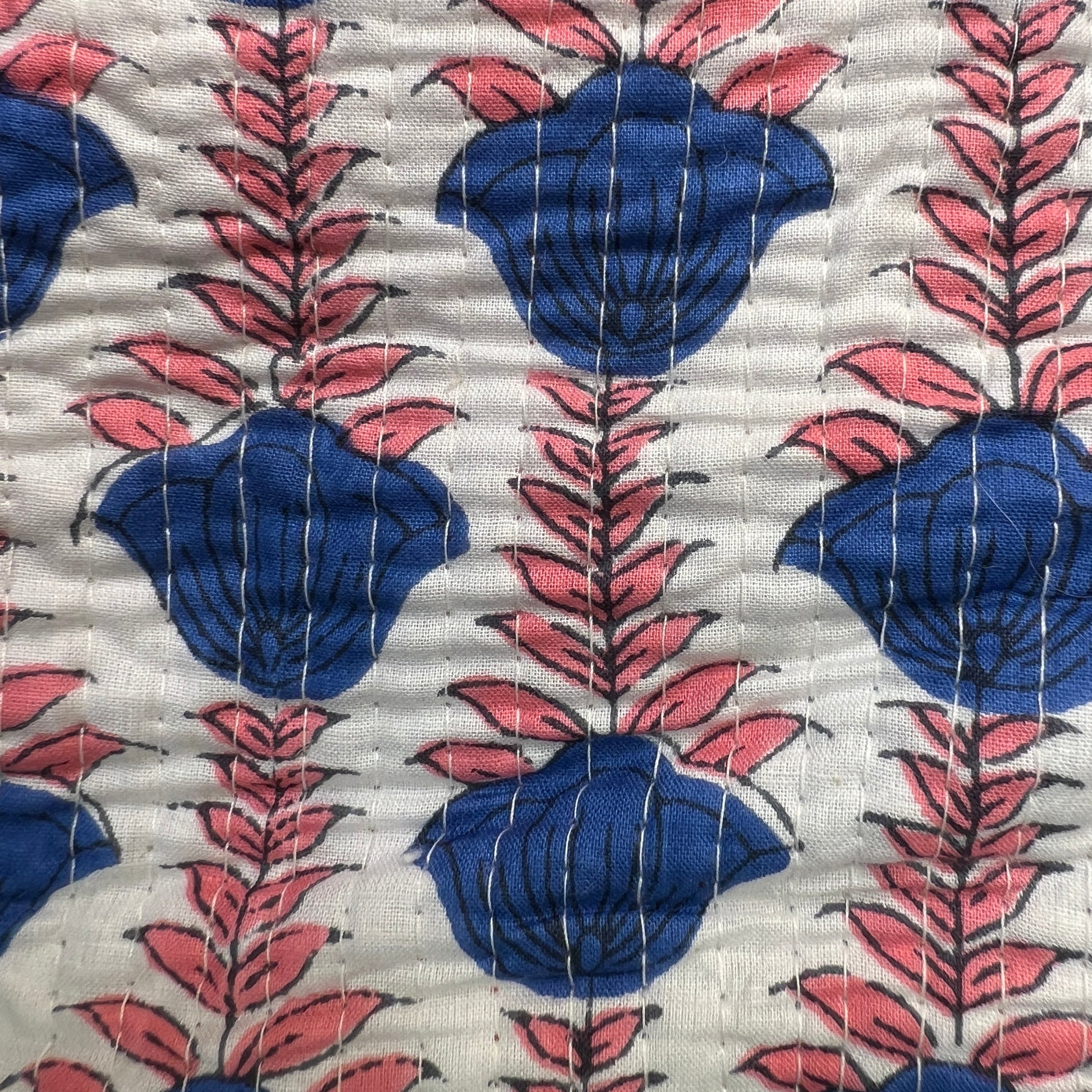 Large Quilted Zipped Bag (White with Pink & Blue Patterns)