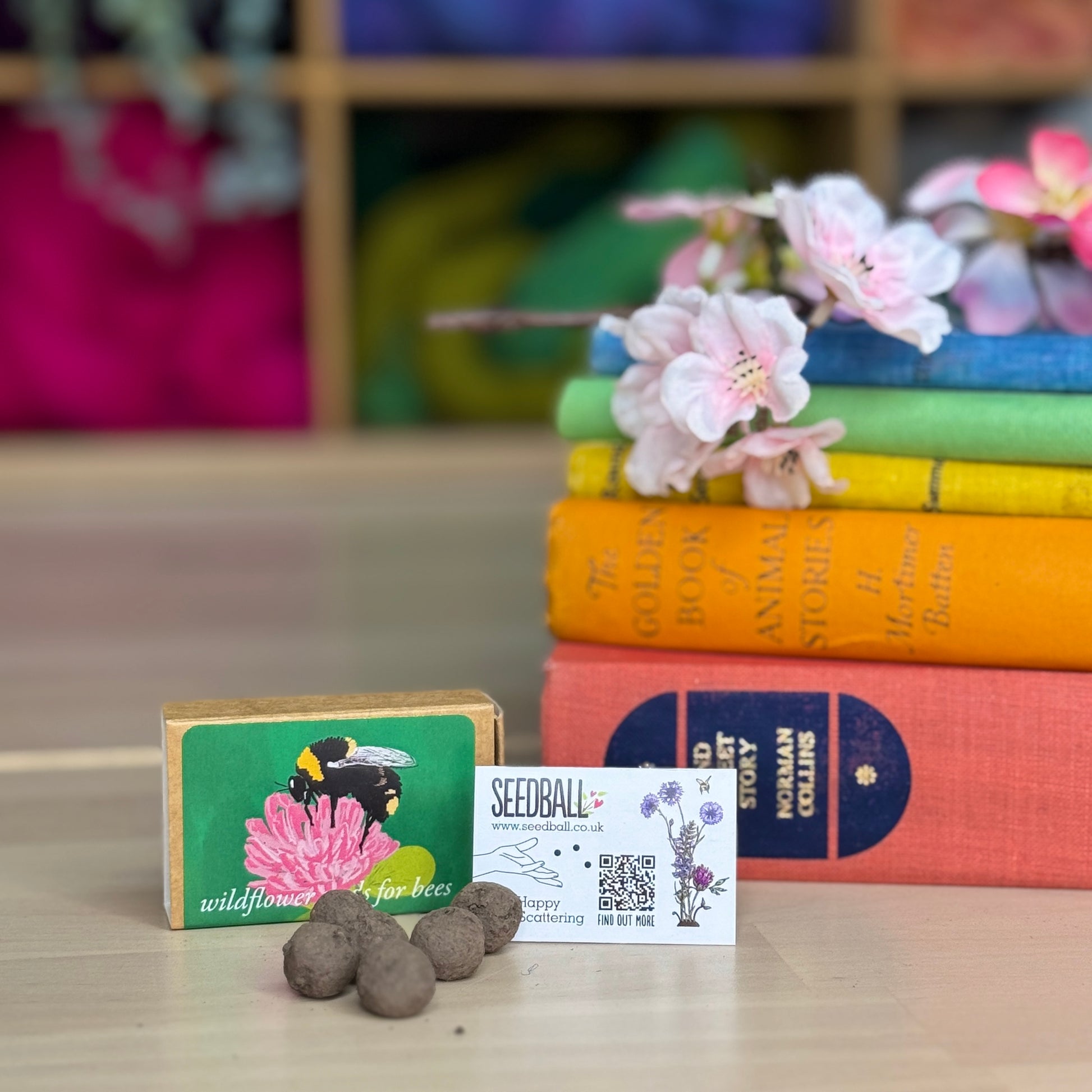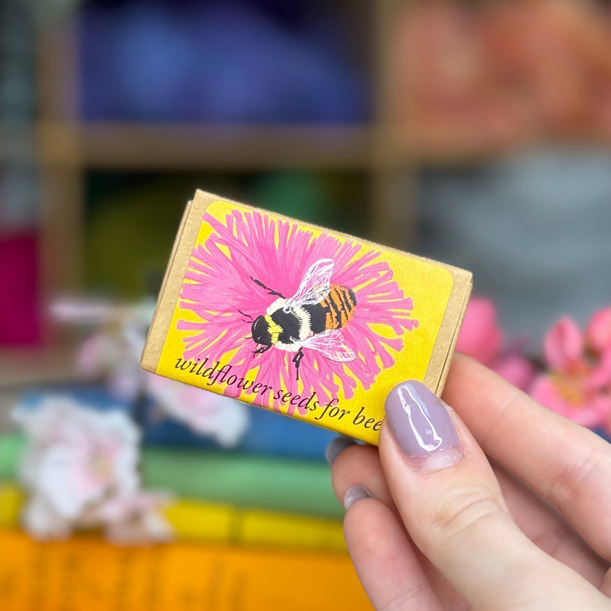 Colourful seed boxes packed with bumblebee friendly wildflower seeds.