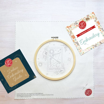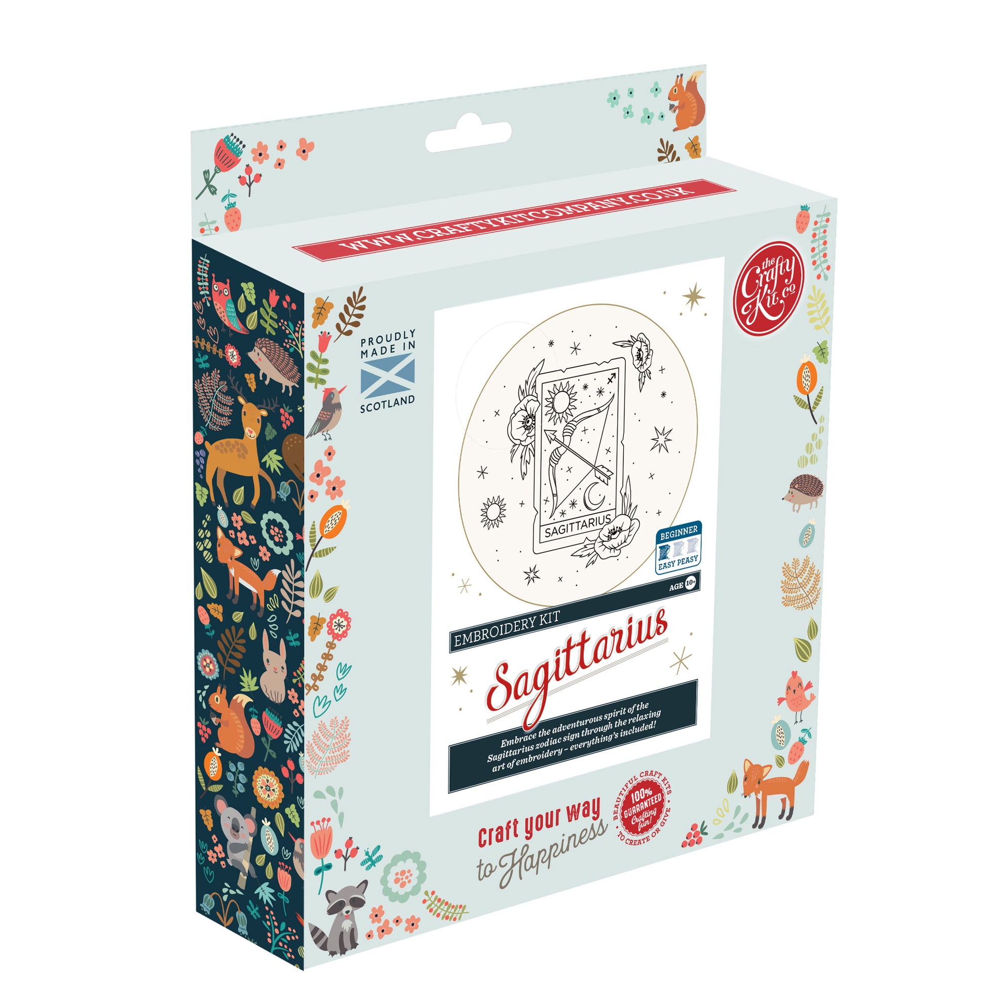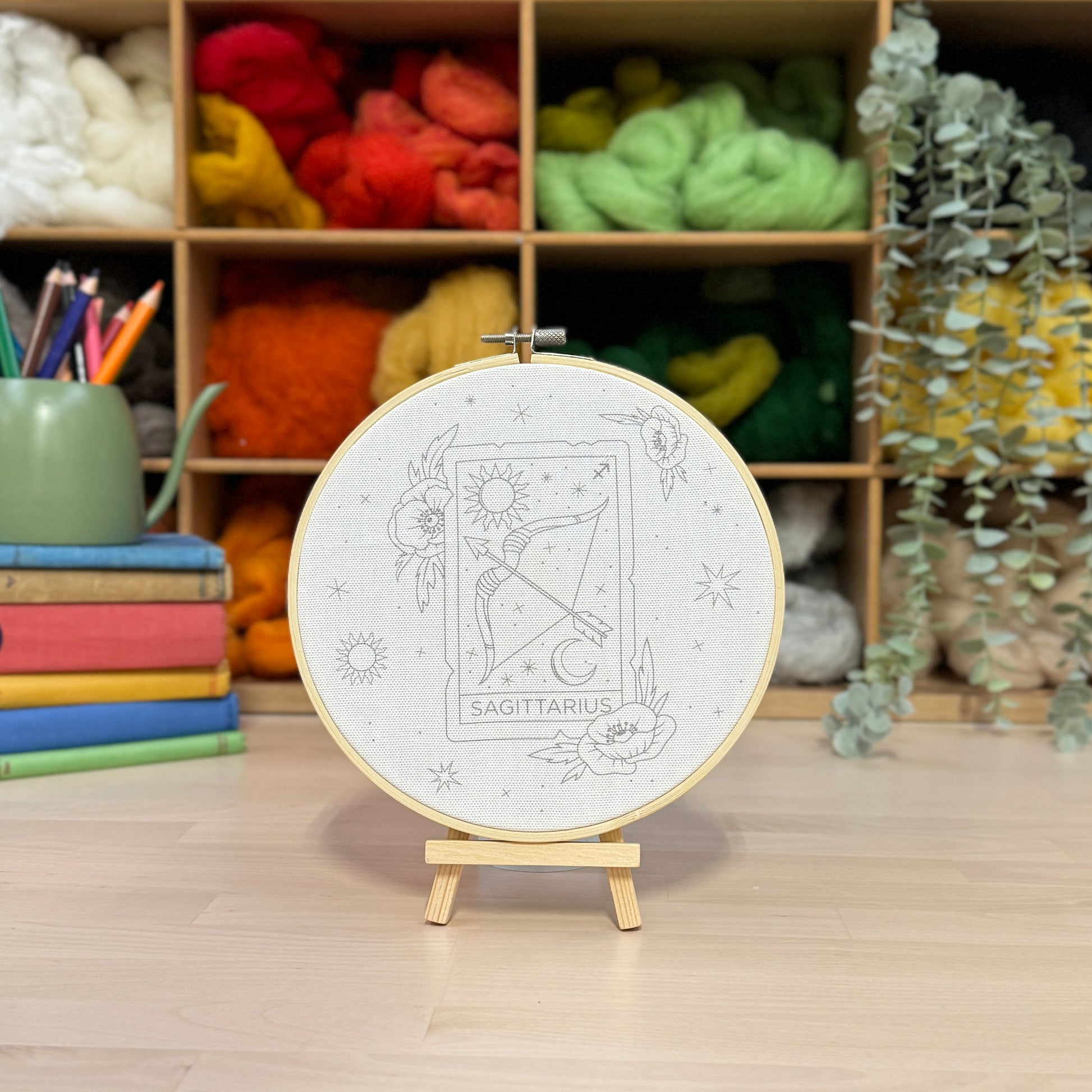 Lovingly made in Scotland, the Sagittarius Embroidery Kit celebrates the magic of star signs and the joy of crafting.