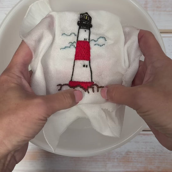 - Soak your finished design in water (not hot); the Stick & Stitch fabric will dissolve, leaving only your beautiful embroidery!