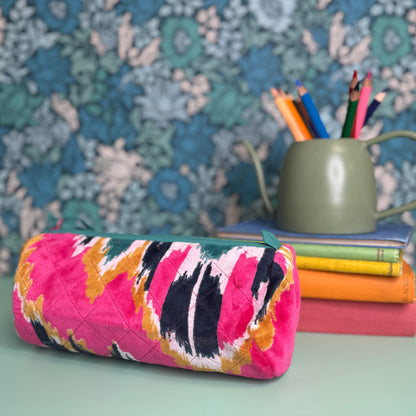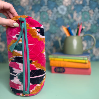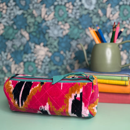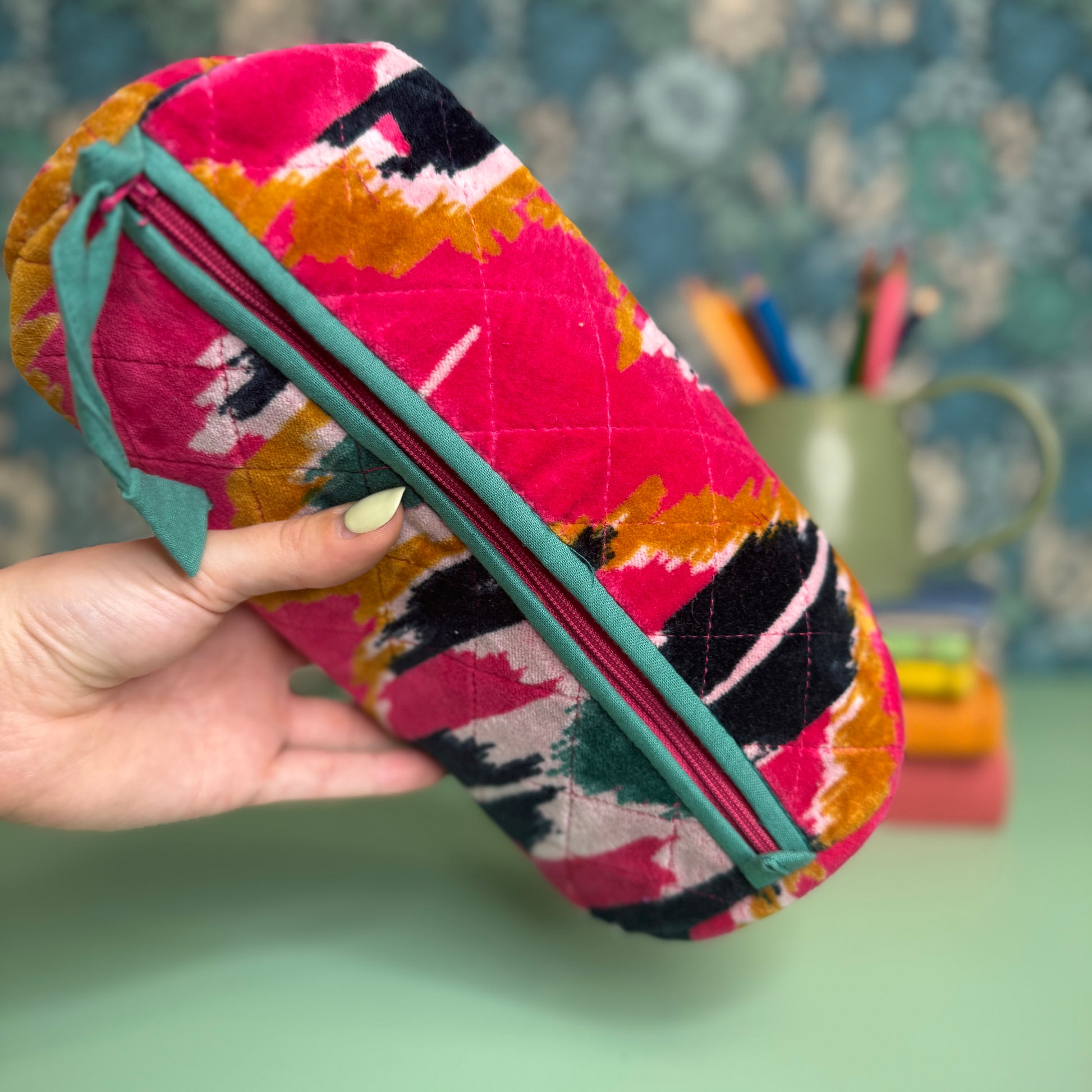These lovely velvet barrel bags are hand made in Rajasthan and can be used as make up bags, craft bags, pencil cases and more!